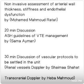 30 min discussion and decision making of Vascular Protocol s and work sheets to be settled in the unit.